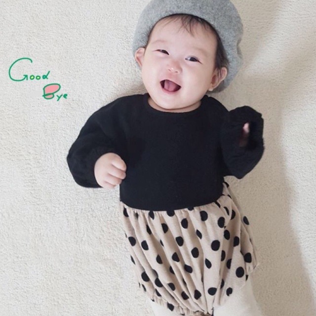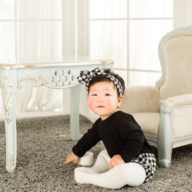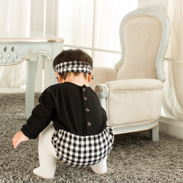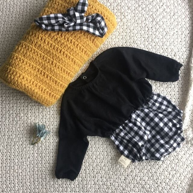 ターバン付き ドット、ギンガムロンパース
